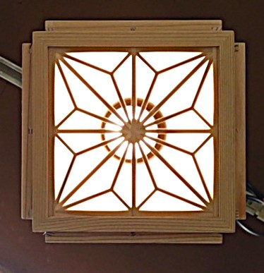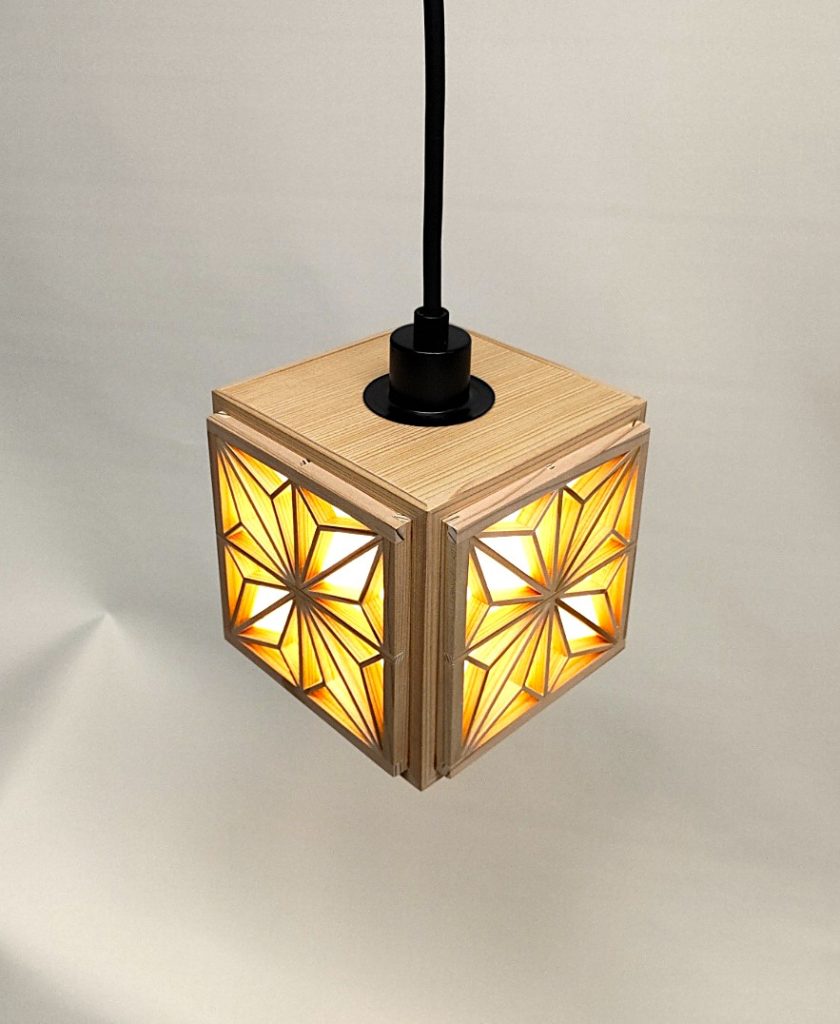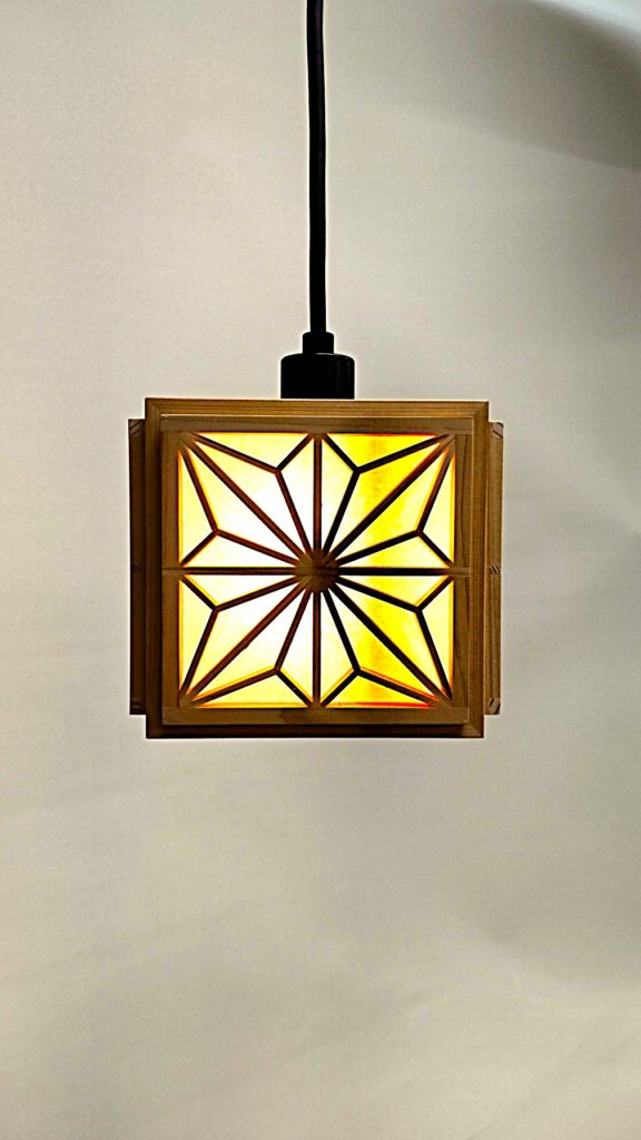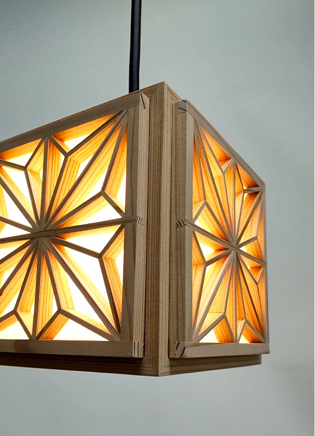 側面の組子細工には内側にワーロンシートを貼り優しいあかりを灯しております。